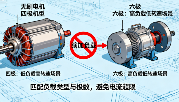 二、四极 / 六极无刷电机适配技巧:按机型 “分步加荷”,不超流
